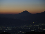 松本の町明かりと夜明け前の富士 北アルプス燕岳より 11月