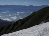 姿を現した富士山 北アルプス針ノ木岳より 7月