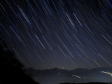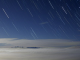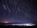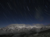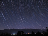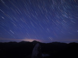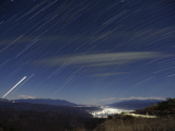 松本の夜景と北アルプスの上のくるくる 長野県高ボッチ高原にて 11月