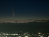アトラス彗星と穂高岳 長野県高美ヶ原高原にて 10月