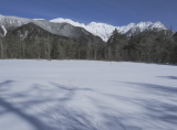 雪に覆われた湿原と吊り尾根 長野県上高地田代湿原にて 2月