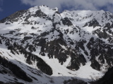 岩稜の残雪模様 長野県上高地小梨平より 4月