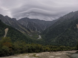 怪しげな雲をかぶる吊り尾根 長野県上高地にて 10月