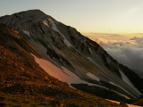 輝く雲海と雪渓 北アルプス白馬岳山頂より 6月