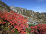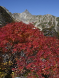 ナナカマドの紅葉と槍ヶ岳 北アルプス天狗原にて 9月