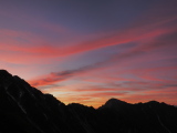 夕焼雲と穂高連峰 北アルプスヒュッテ大槍にて 10月