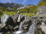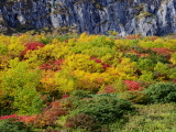岩壁と紅葉 北アルプス槍沢にて 9月