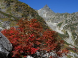 ナナカマドの紅葉と大喰岳 北アルプス槍沢にて 10月