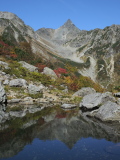 水面に映える紅葉の涸沢岳 北アルプス涸沢カールにて 10月