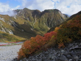 紅葉の槍沢より西岳を望む 北アルプス槍沢にて 10月