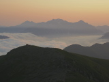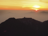 御嶽に沈み行く太陽 中央アルプス木曽駒ヶ岳より 6月