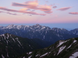 ロゼワインのごとき夕照 北アルプス南岳より 10月