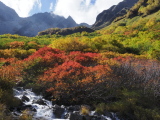 屏風の頭とナナカマドの紅葉 北アルプス涸沢カールにて 10月