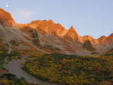 残月のモルゲンロート 北アルプス涸沢カールにて 10月