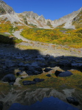 水面に映える黄葉 北アルプス涸沢カールにて 10月