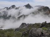 湧き上がる雲に包まれゆくスバリ岳 北アルプス針ノ木岳より 7月