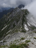 これから進む険しい道 北アルプス涸沢岳にて 7月