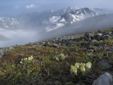 ツクモグサと鉢ヶ岳 朝日岳 北アルプス白馬岳にて 6月